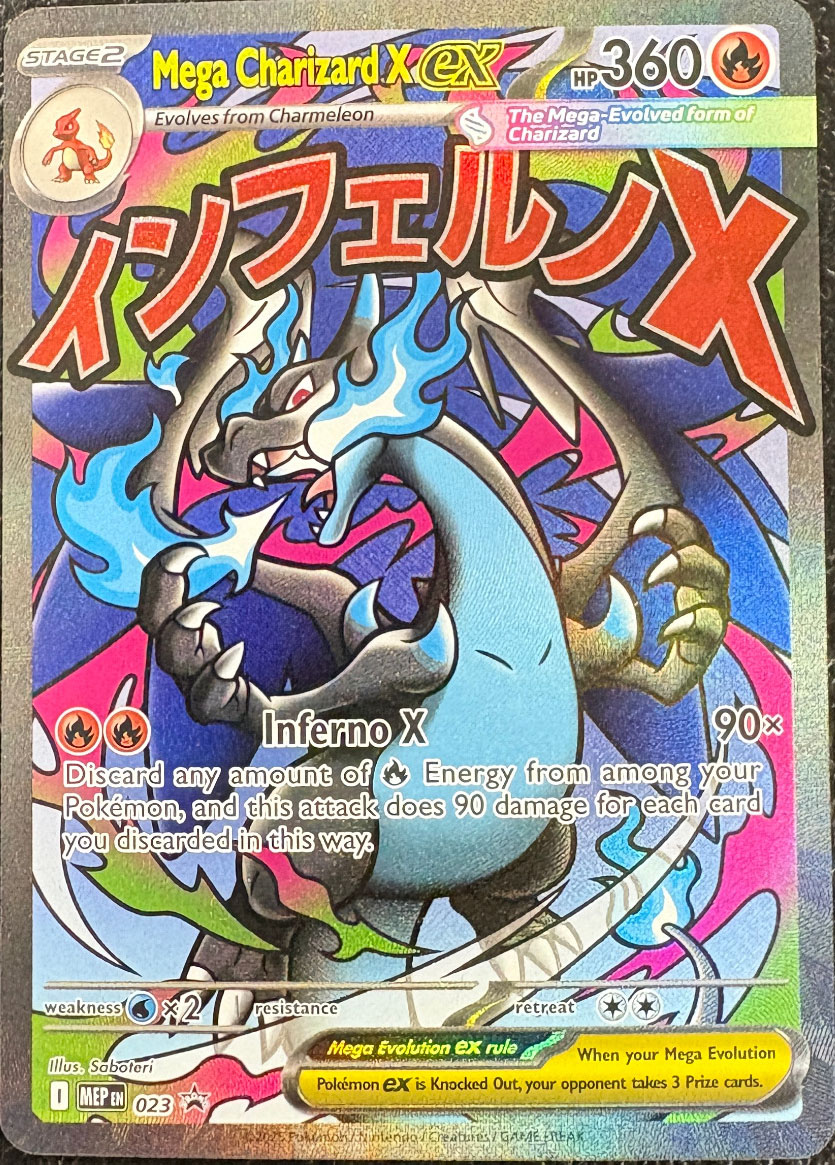 A standout Mega Evolution card showcasing Charizard’s X form, celebrated for its bold artwork and competitive legacy.