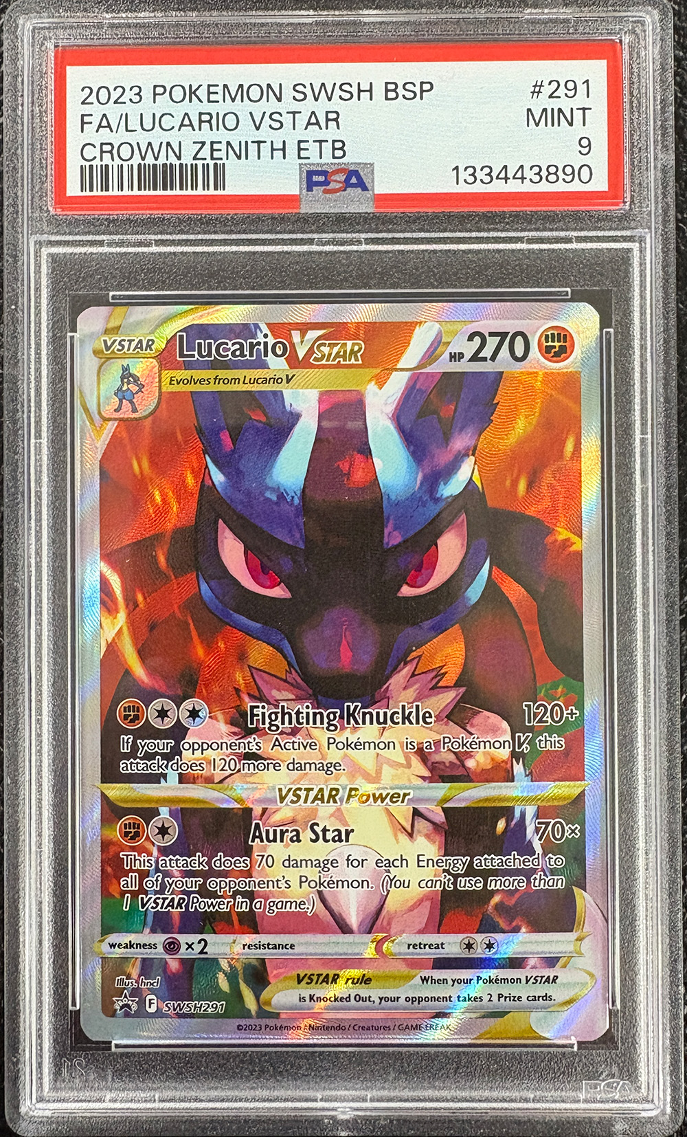 As the celebratory finale of the Sword & Shield series, Crown Zenith introduced a range of highly collectible promos with limited availability through specialty products like Elite Trainer Boxes. Lucario continues to rank among the most popular Pokémon, with lasting appeal across the games, anime, and trading card game. As a PSA-graded ETB-exclusive promo, this Lucario VSTAR represents a standout modern collectible, combining fan-favorite character appeal with strong long-term demand in the Pokémon TCG market.