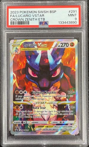 Lucario VSTAR Crown Zenith Promo PSA 9 – A Fiery Showcase of Aura Power